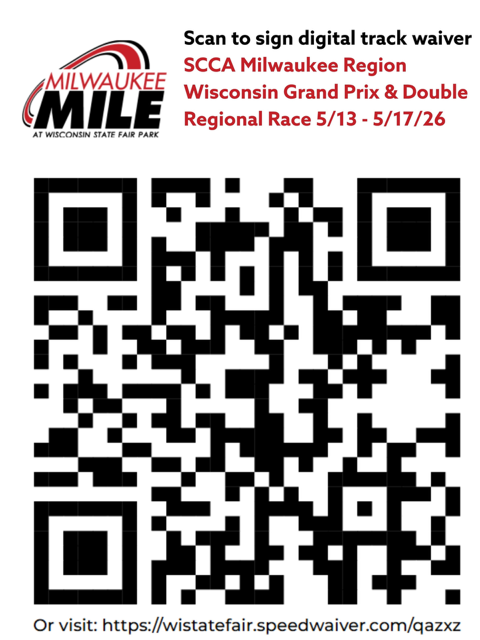 THIS INFO APPLIES TO THE WI GRAND PRIX TEST DAY, DOUBLE REGIONAL, AND TIME TRIALS EVENTS HAPPENING MAY 15-17